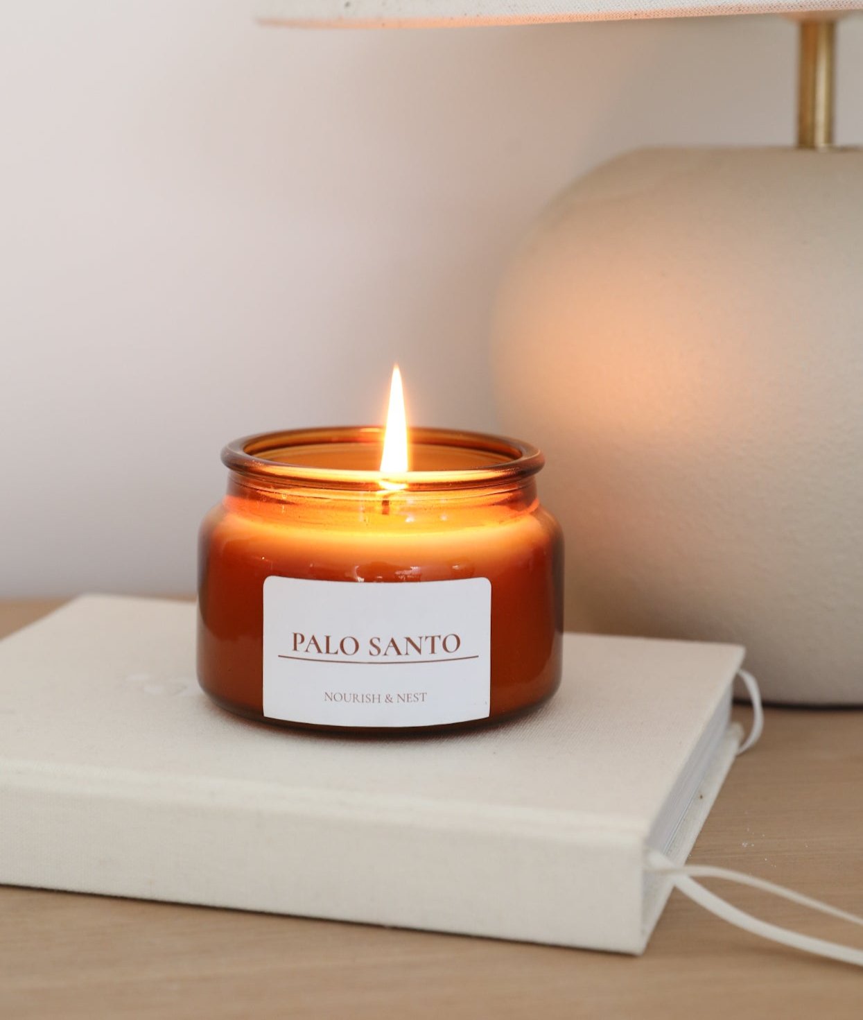 Transform your space with the calming and purifying essence of our Palo Santo Candle. Featuring a rich blend of pine, mint, and lemon, this candle is designed to cleanse your atmosphere, restore tranquility, and inspire positivity.