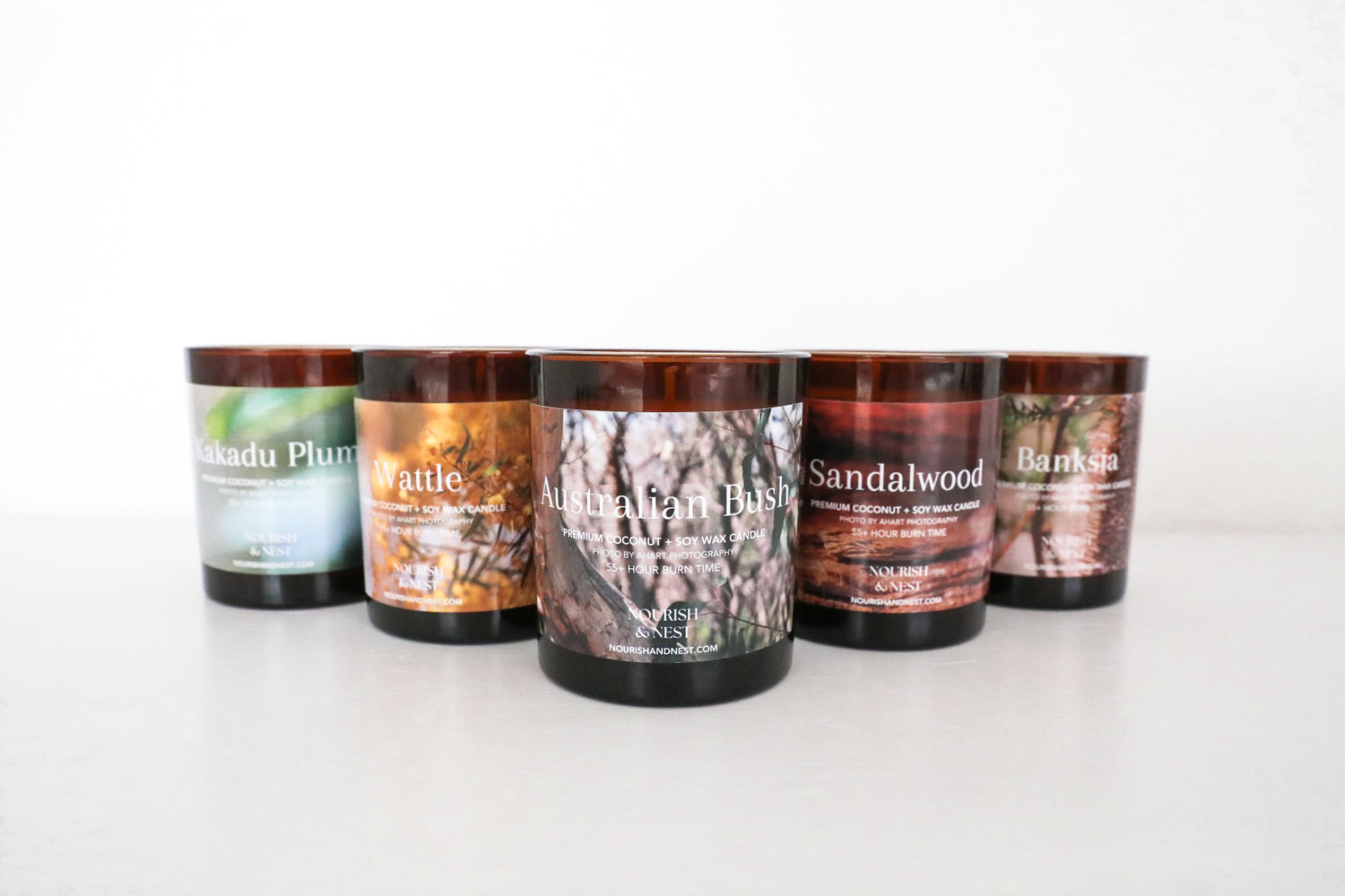 Hand poured with genuine Aussie love, our 5 beautiful blends are crafted just for you. Each candle captures a unique essence—from coastal breezes to the raw charm of the bush—designed to elevate your daily rituals and inspire mindful living. Enjoy the warmth and care in every glow, made with passion right here in Australia.
